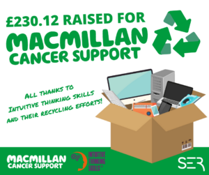 Intuitive Thinking Skills have successfully raised £230.12 for Macmillan Cancer Support by recycling their redundant IT and electronic equipment.